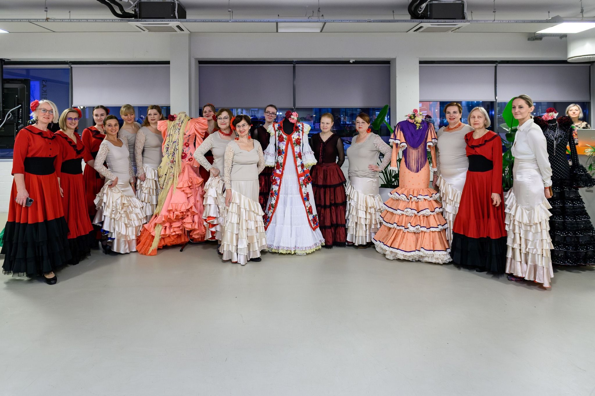 Посетители увидели эффектные работы дизайнеров-модельеров из Андалусии - родины фламенко. Большую гордость вызвали и работы входящей в ассоциацию Qlamenco литовского дизайнера Римы Поцявичене, около 20 лет живущей в Испании. В создаваемых платьях она использует и литовский лён.