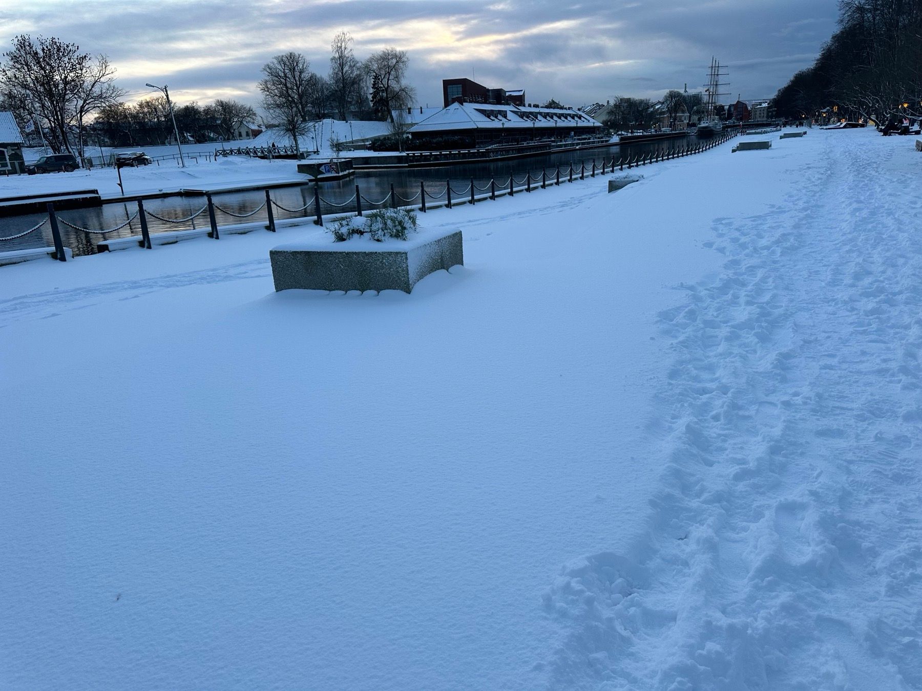 Но Клайпеда в декабре всё равно украшалась - огоньками, световыми лучами, новогодними игрушками. Главная ёлка, ледовый каток, развлекательные центры в городе, всё это было.