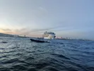 В тот момент, как из порта выходили большие круизные корабли, к нам направилось патрульное судно, что немножко потрепало нам нервишки. Здесь очень строго, всё обошлось предупреждением, посоветовали поскорее уйти подальше от круизных лайнеров.