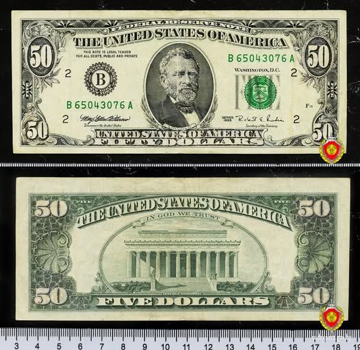Как оказалось, над 50-долларовой бумажкой неплохо «поработали», ведь изначально она являлась пятью долларами. На отдельные участки банкноты были наклеены нули, фрагменты текста и лицо Улисса Гранта — 18-го президента США. Эти визуальные атрибуты соответствуют номиналу 50 долларов. Сотрудникам милиции девушка пояснила, что деньги она получила от подруги в счет возмещения долга. При получении 50 долларов подделку белоруска не заметила.