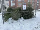 На заграждении также была информация, что ёлки необходимо выбрасывать без пластмассовых вазонов, без игрушек, без блёсток и без пластиковых мешков.