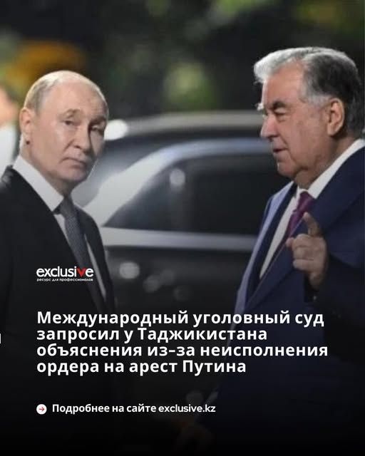 Досудебная палата Международного уголовного суда (МУС) призвала власти Таджикистана предоставить объяснения в связи с отказом Душанбе арестовать и передать МУС президента России Владимира Путина во время его визита в страну в октябре 2025 года. Соответствующий запрос из МУС был направлен 5 ноября, но известно о нем стало только сейчас, сообщает Exclusive.kz со ссылкой на Радио Азаттык.
