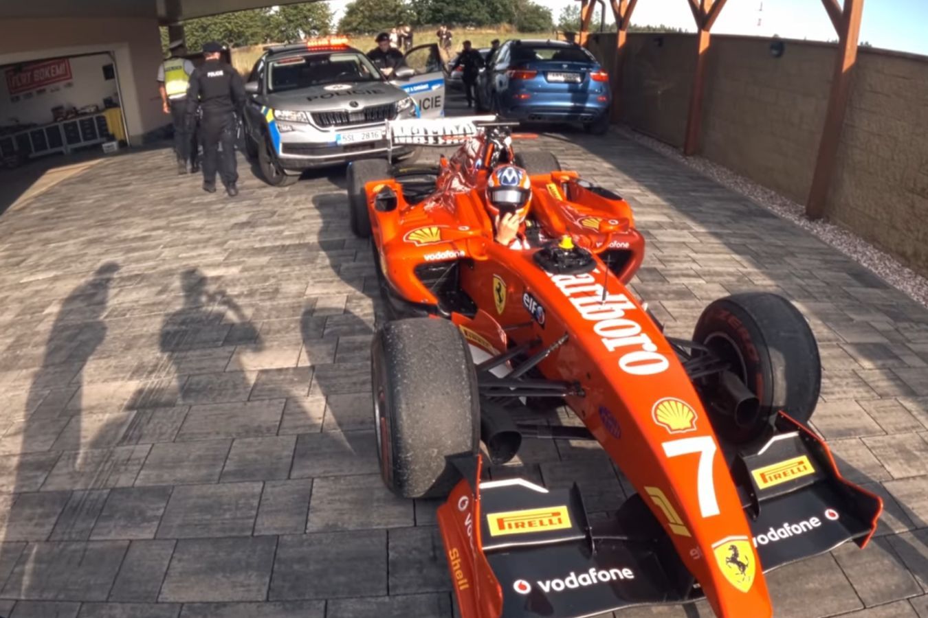 Возможно, за последние годы вам в ленте новостей или в соцсетях попадалось видео, на котором гоночный болид, раскрашенный в ливрею «Феррари» образца 2000-х, гоняет по дорогам общего пользования. Загадочный гонщик время от времени продолжал свои вылазки на шоссе, но вот недавно его наконец поймала чешская полиция.