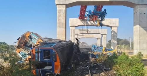 Строительный кран, используемый при возведении эстакады для будущей высокоскоростной железной дороги, рухнул прямо на проходивший мимо пассажирский поезд, следовавший из Бангкока в провинцию Убон Ратчатхани. В результате столкновения поезд сошел с рельсов, а несколько вагонов загорелись.