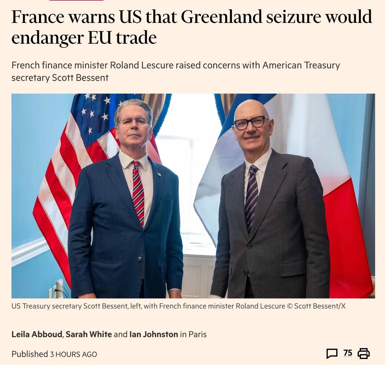 Франция пригрозила США разрывом экономических отношений с Европой в случае попытки захвата Гренландии, сообщает Financial Times.