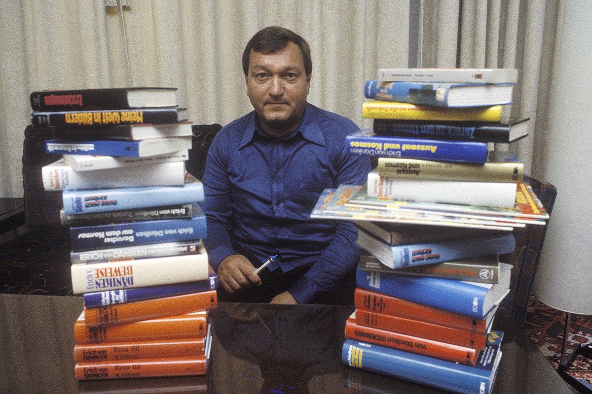 Писал книгу Дэникен по ночам, работая управляющим отеля в Давосе. Он устроился туда после того, как отбыл срок за египетские приключения. Правда, когда «Воспоминания о будущем» наконец вышли в 1968-м, выяснилось, что последние 12 лет Дэникен занимался мошенничеством в особо крупных размерах. Благодаря подложным документам он получал ссуды в банках.