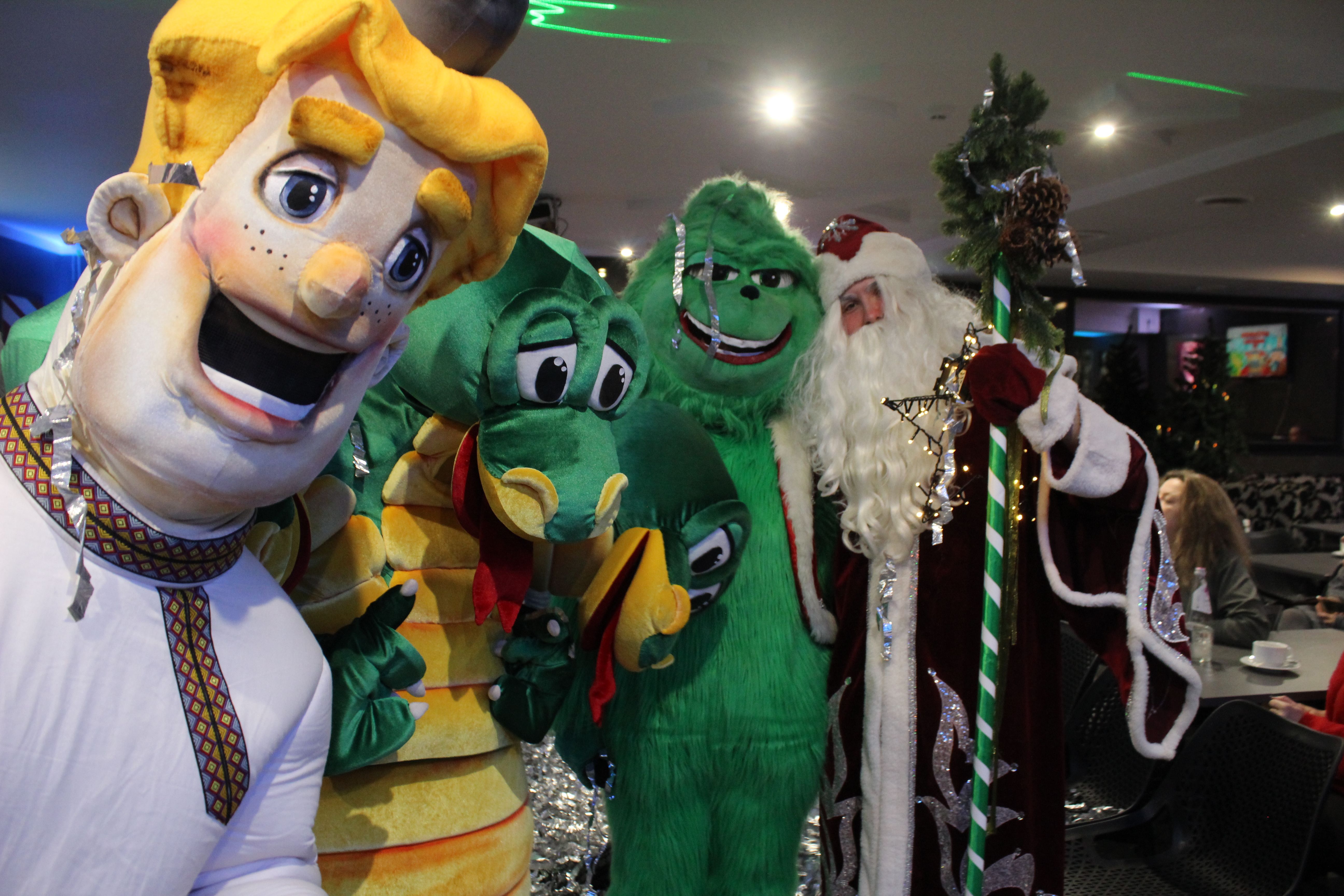 На сцене и среди гостей появились герои русских народных сказок в ростовых костюмах: Алёша Попович, Змей Горыныч, весёлый и задорный конь Алёши Поповича — Юлий, а также настоящий Дедушка Мороз.