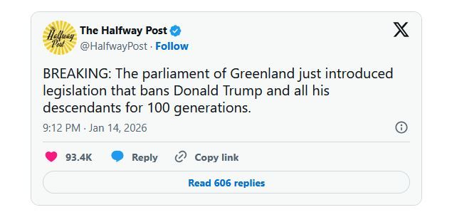 Сообщение о том, что Гренландия запретила въезд Трампу и следующим 100 поколениям его потомков, набрало миллионы просмотров и тысячи репостов. Оказалось, что пост был опубликован сатирическим новостным каналом, сообщает euronews.com.