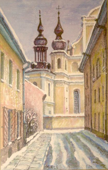 На очередной иллюстрации, с помощью которых «Обзор» продолжает знакомить своих читателей с уголками старого Вильнюса, запечатлённых столичным художником Леонидом Мироненко, - костёл Святого Михаила (костёл Святого Архангела Михаила).
