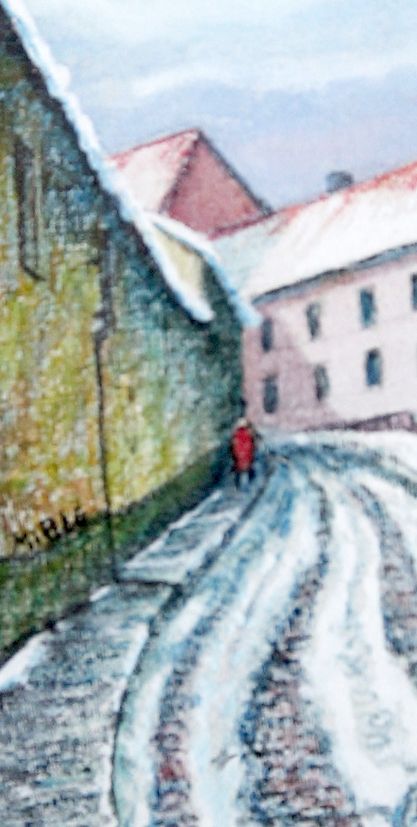Л.Мироненко также обратил внимание на идущий по стене дождевой жёлоб. Он остался только на картине, а вот его нижняя часть осталась. Наверное, в качестве напоминания гулякам, чтобы смотрели не только по сторонам, но и под ноги.