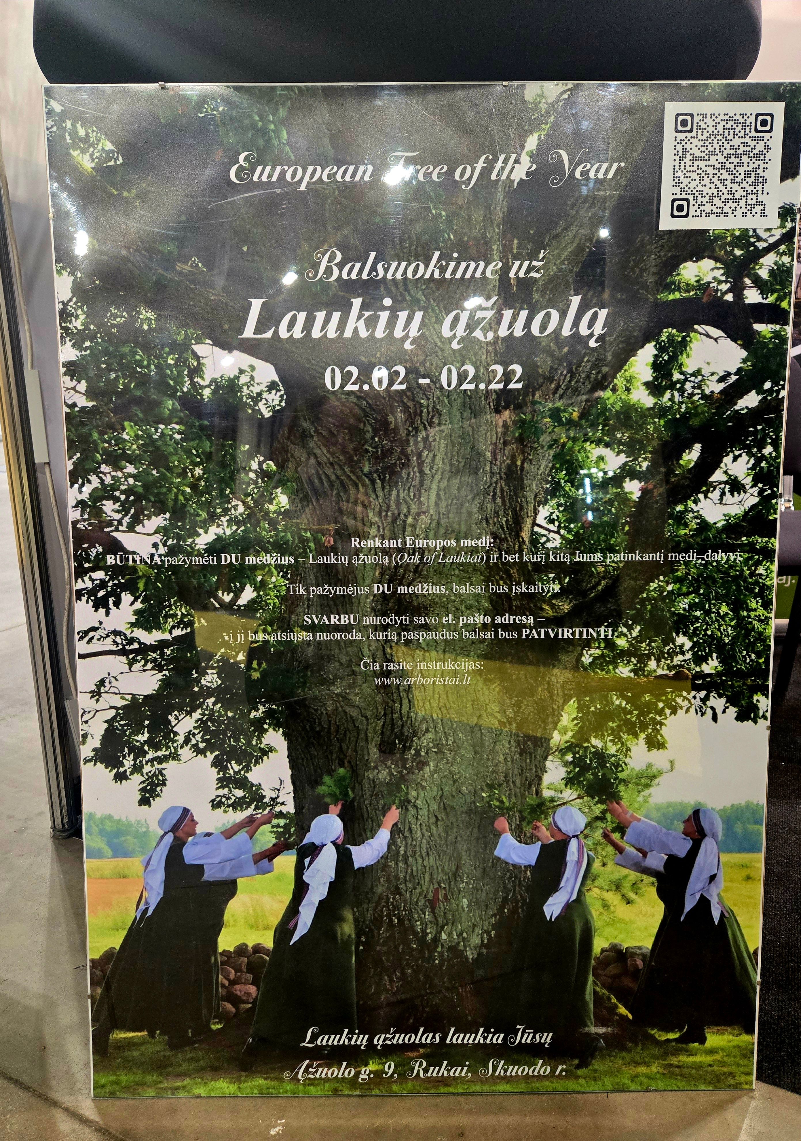 Лаукуйский дуб стал Деревом года Литвы — 2025, а теперь участвует в общеевропейском голосовании, где соревнуется с уникальными деревьями из других стран.