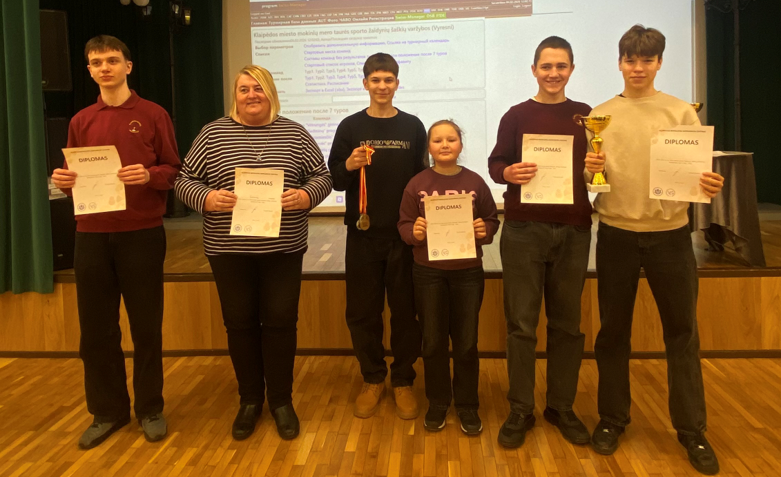 Кубок мэра по шашкам выиграла команда Клайпедской гимназии Vėtrungė в составе Тадаса Букаускаса (капитан), Алдаса Ужданавичюса, Элиюса Дилиса и Эмилии Кибилдайте. Ребята пять партий выиграли и две свели к ничьей (5:2:0) – это 12 командных очков.