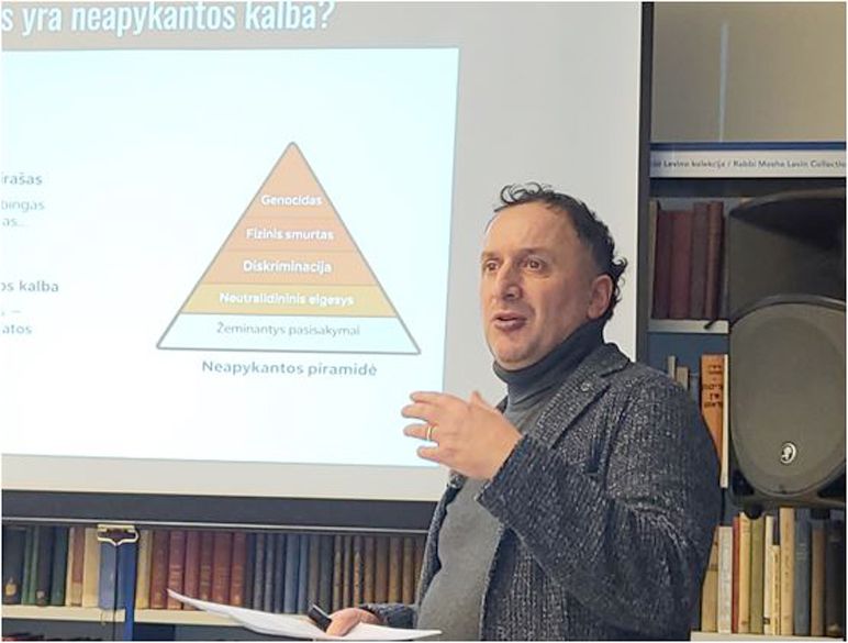 «Как представитель еврейского сообщества Литвы, хочу подчеркнуть, что именно мы — евреи Литвы — должны помочь тем, кто подвергается нападкам: русским, ромам (цыганам) и другим уязвимым группам людей, — говорит Э.Алесин — Мы не можем быть только сами за себя. У нас есть опыт противодействия распространению языка ненависти, и мы можем и должны научить этому других».