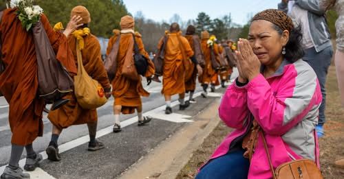 Монахи, одетые в традиционные туники цвета азафран, начали свой «Walk for Peace/Поход мира» в конце октября 2025 года от центра Huong Dao Vipassana Bhavana Center в Форт‑Уэрте и через Техас, Луизиану, Миссисипи, Алабаму, Джорджию, Южную и Северную Каролину, Вирджинию и другие южные и восточные штаты продвигались в сторону столицы.