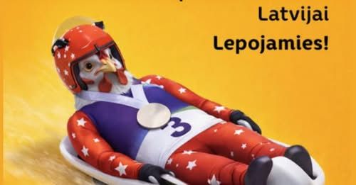 «САМЫЕ громкие аплодисменты и овации нашей саночнице Элине Иеве Боте, которая доказывает, на что способны латыши! Пусть удача не покидает - продолжаем поддерживать своих, мчась навстречу мечтам и самым высоким целям», - гласил текст публикации. К самому тексту претензий нет, но визуальное сопровождение шокировало пользователей. На поздравительной открытке красовалась курица на санях с медалью на шее. Намек на профиль предприятия понятен, но в контексте поздравления девушки-атлета это выглядело двусмысленно и неуместно.
