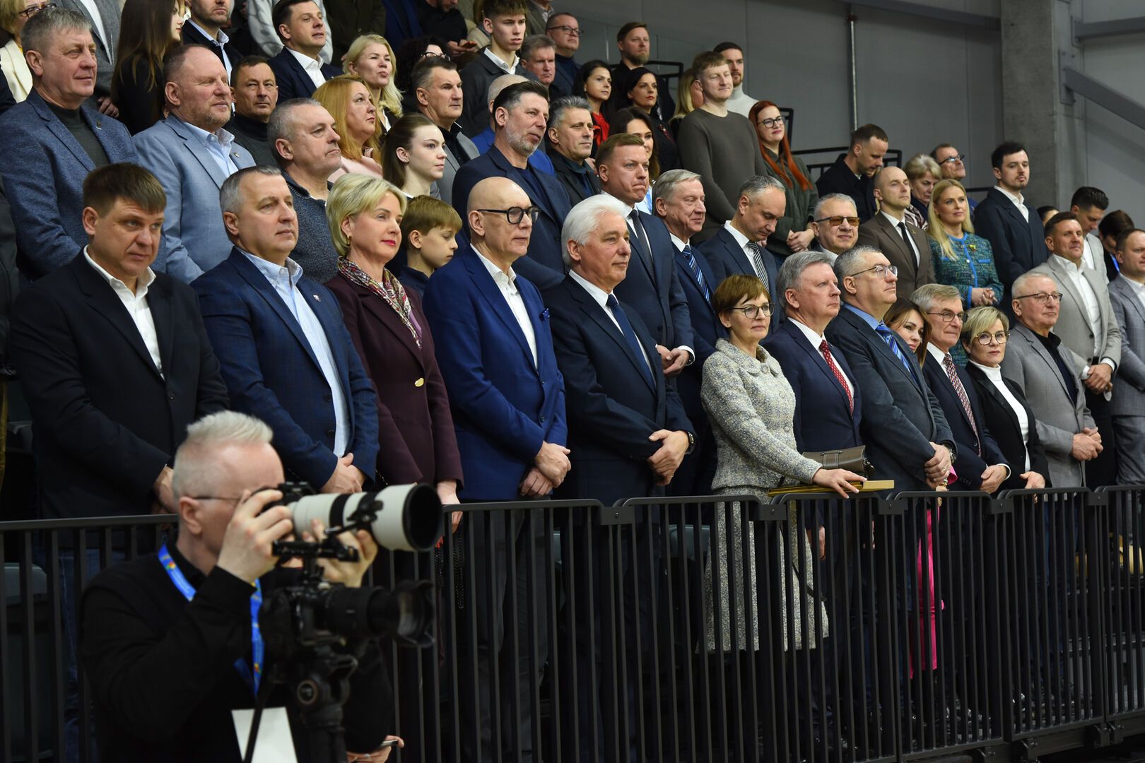 Открывая церемонию, мэр Плунгского района Аудрюс Клишонис сказал: «Наш город прекрасен, он развивается, но мы всегда чувствовали нехватку спортивной арены. Мы пытались построить её не раз, но только третий проект увенчался успехом.
