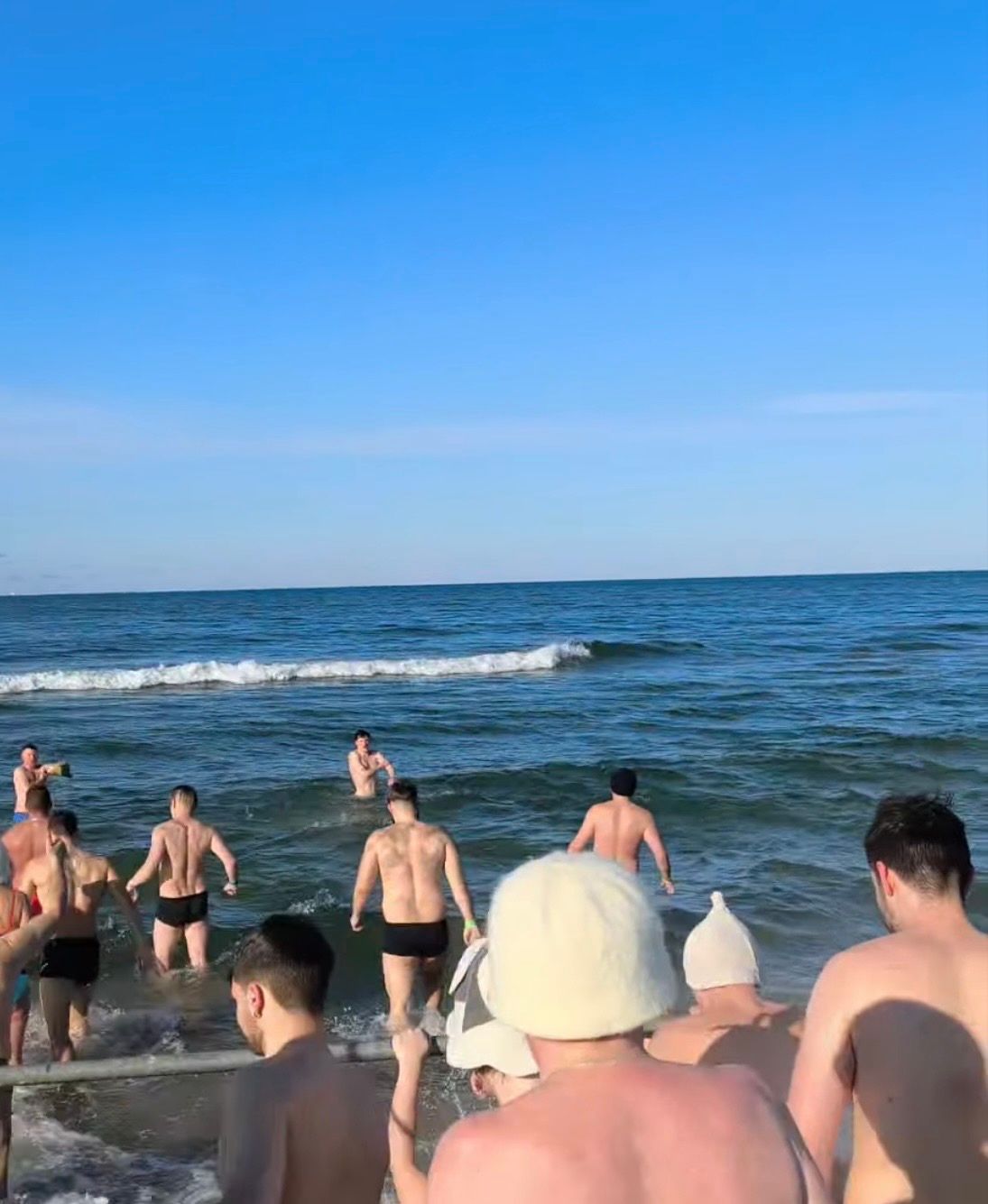 Потом была обучающая спортивная разминка, и только потом последовал заход в парилки и купание в море.