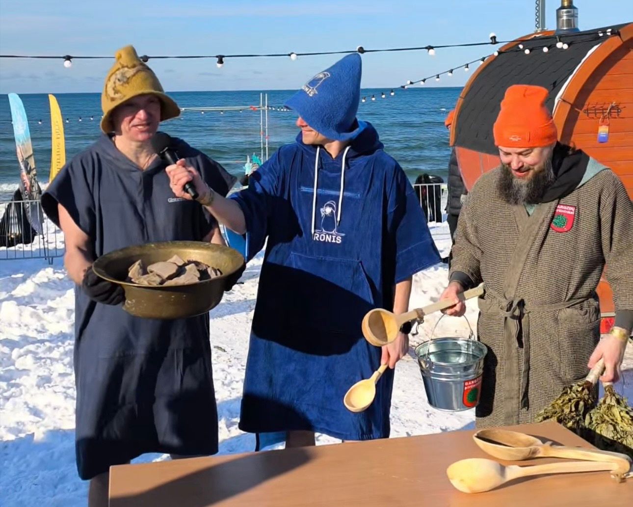 Минувшие выходные, 14 и 15 февраля, у моря были незабываемыми как для любителей бани зимой, так и для зрителей. Экзотики хватало, ведь программа фестиваля была очень разнообразна. Да это сразу бросалось в глаза: поддать пару можно было не только в мобильных саунах-прицепах, но и в открытых чанах, называемых в Литве кубиласами.