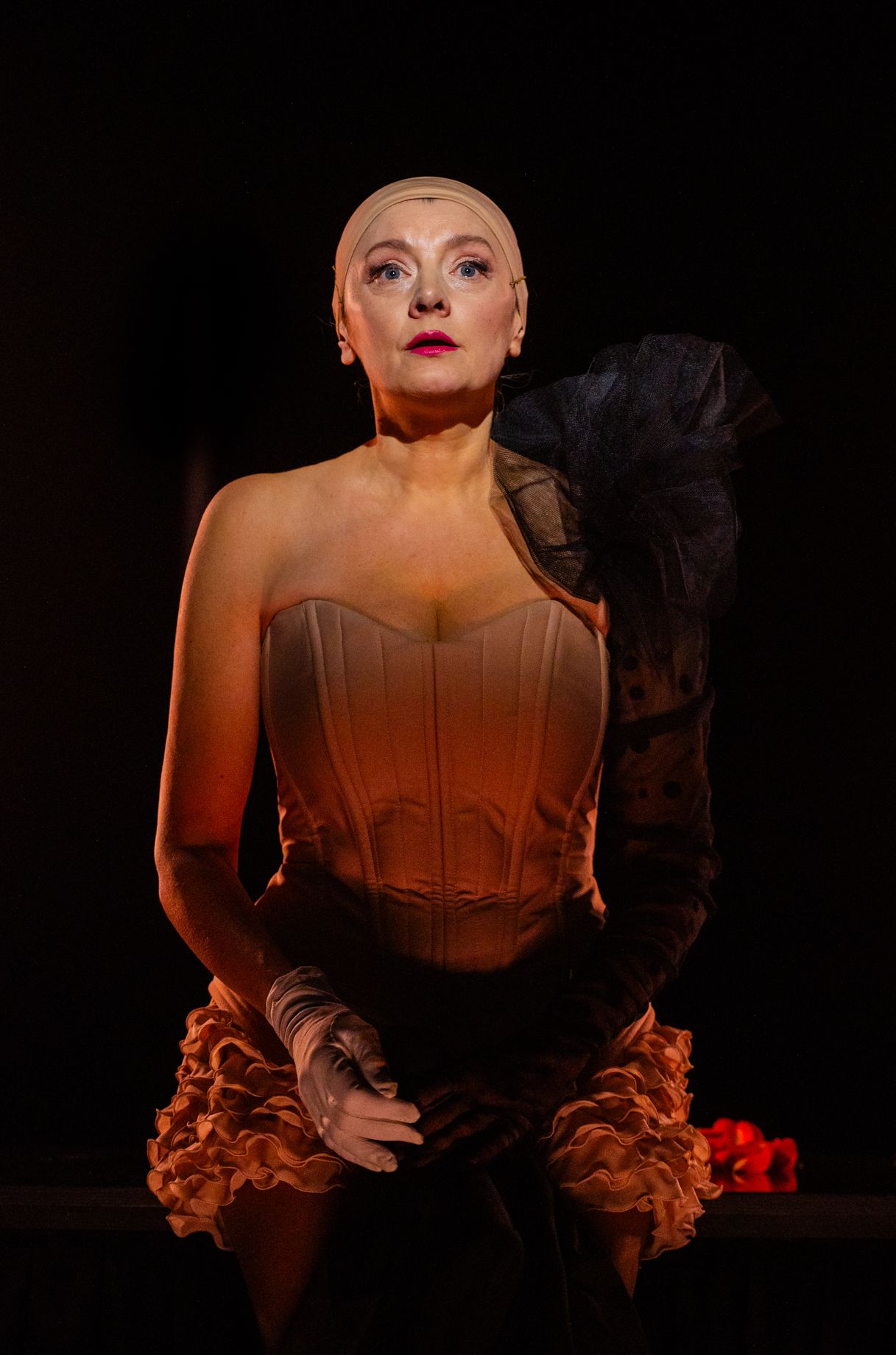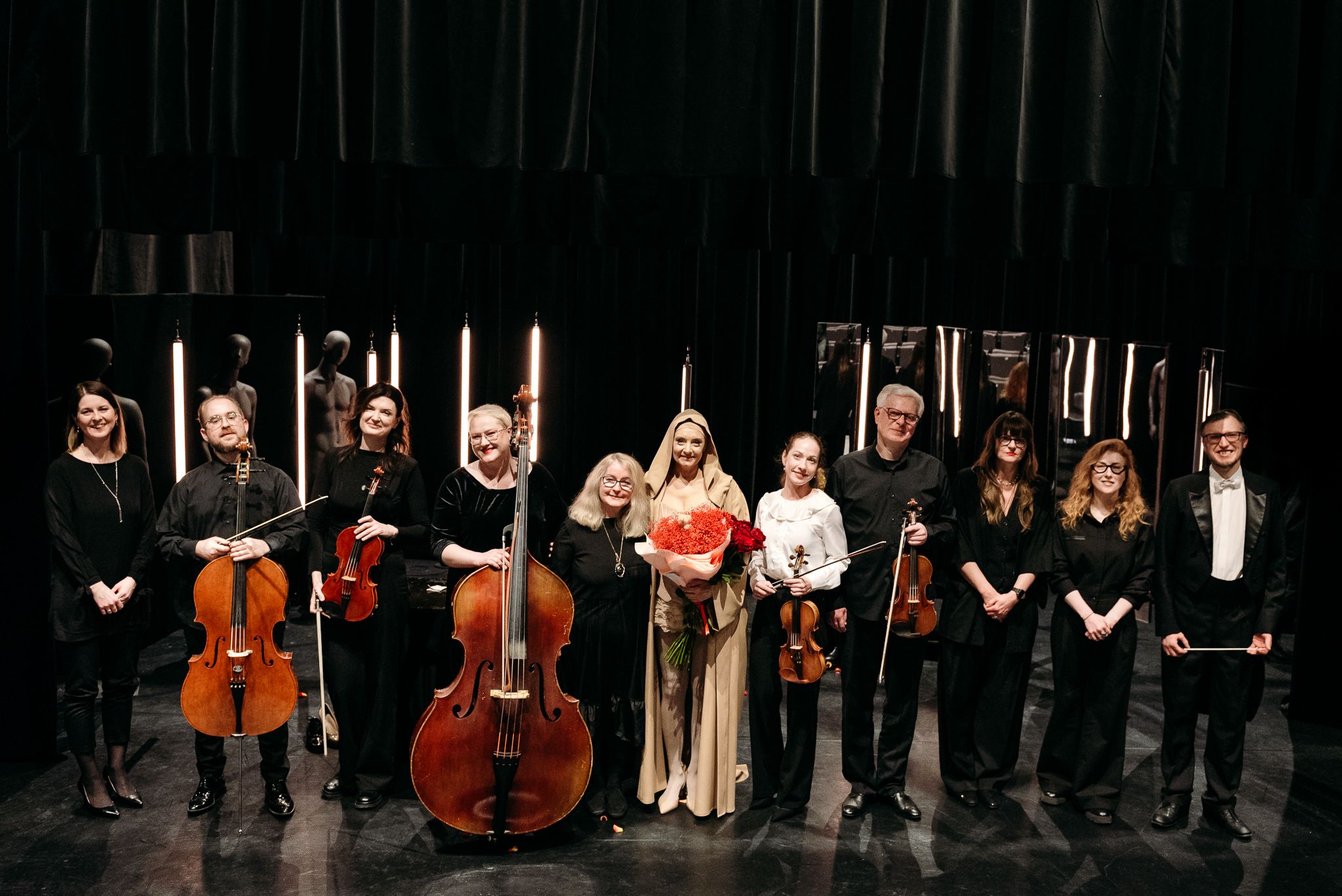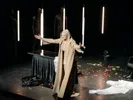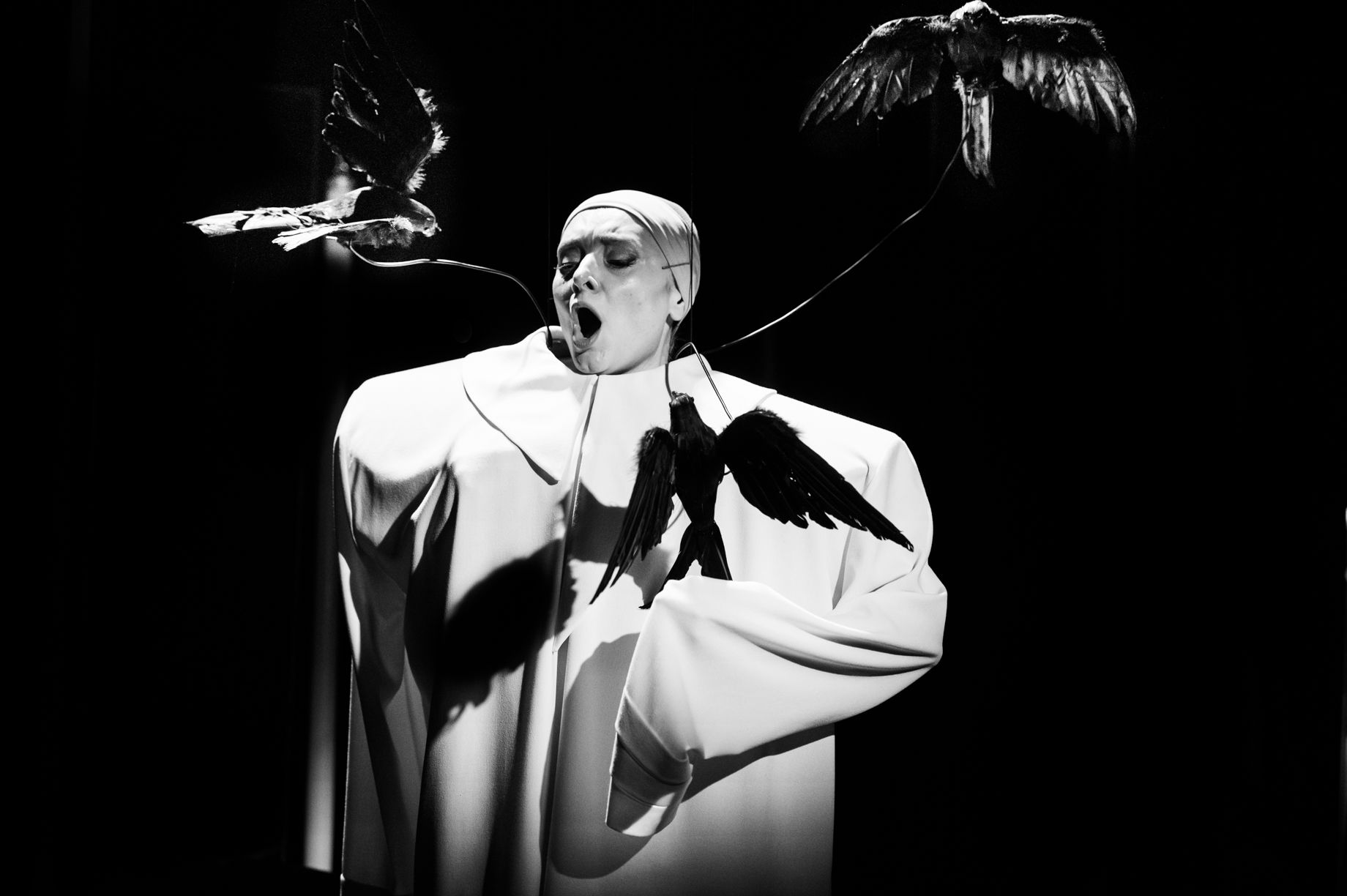 В центре монооперы — солистка Клайредского государственного театра Рита Пятраускайте. Она единолично царила на сцене на протяжении всего спектакля. Это огромная задача, требующая не только технического мастерства, но и внутренней выносливости.