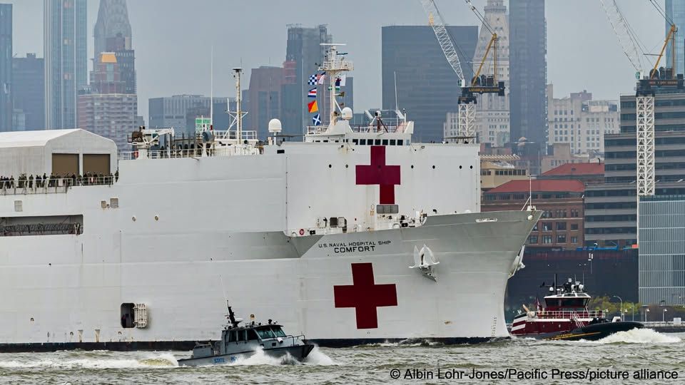 (На архивном фото: плавучий госпиталь ВМС США USNS Comfort покидает Нью-Йорк)