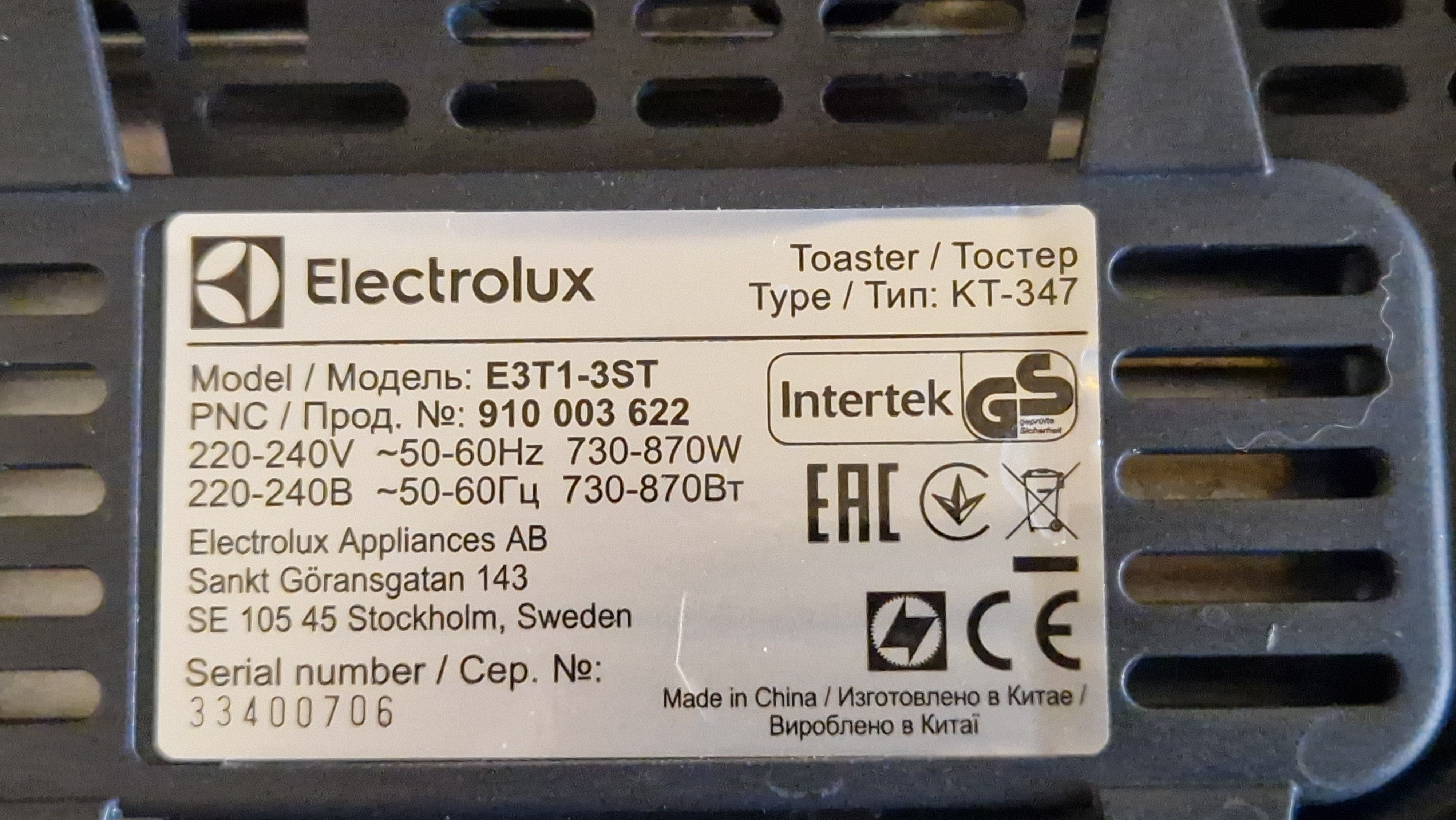 И вот появился его конкурент - от знаменитого производителя Electrolux. Новичок выпущен несколько лет назад (когда именно уточнить не далось - дата производства не указана). Но зато чётко просматривается, что этот предмет от знаменитого производителя Electrolux сделан в Китае.