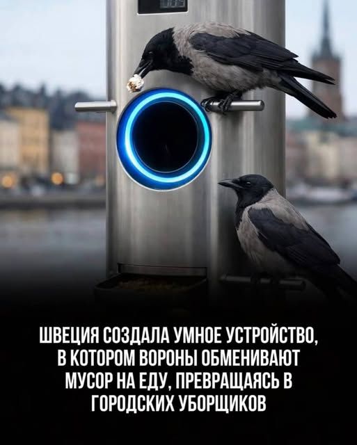В Швеции стартап Corvid Cleaning протестировал пилотный автомат, который обучает ворон собирать окурки в обмен на небольшое вознаграждение в виде корма.