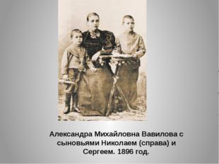 Отец - Иван Ильич Вавилов - обычно не вмешивался в воспитание детей, предоставив это матери. Дети её обожали, а она особенно нежно относилась к младшему сыну. В неоконченной автобиографии Сергей Иванович писал: "Мать замечательная, редкостная по нравственной высоте… окончила только начальную школу, и весь смысл жития её была семья… Мать любил я всегда глубоко… Мало таких женщин видел я на свете".