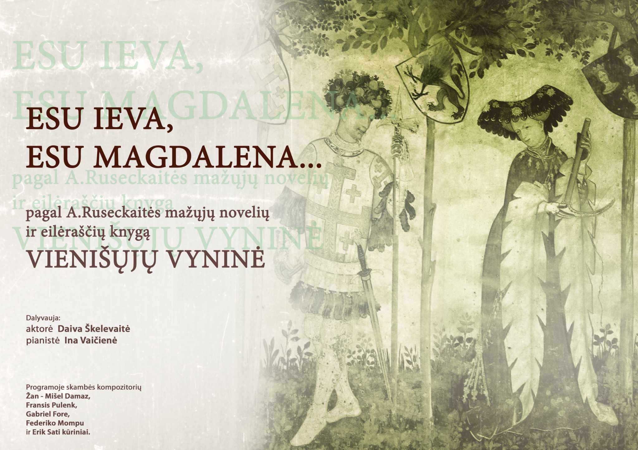 Кто владеет литовским языком, любит признанный во всем мире литовский театр, тот получит наслаждение от спектаклей в Каунасе, в уютном 100-местном зале Каунасского Дома художника: 10 апреля поэтическо-музыкально-виннодегустационный, очень женский спектакль «ЕВА МАГДАЛЕНА» (режиссер Александрас Рубиновас) и там же, 25 апреля - великий спектакль «МОЙ ОТЕЦ» (режиссёры С. и А. Рубиновасы, в главной роли А. Рубиновас).