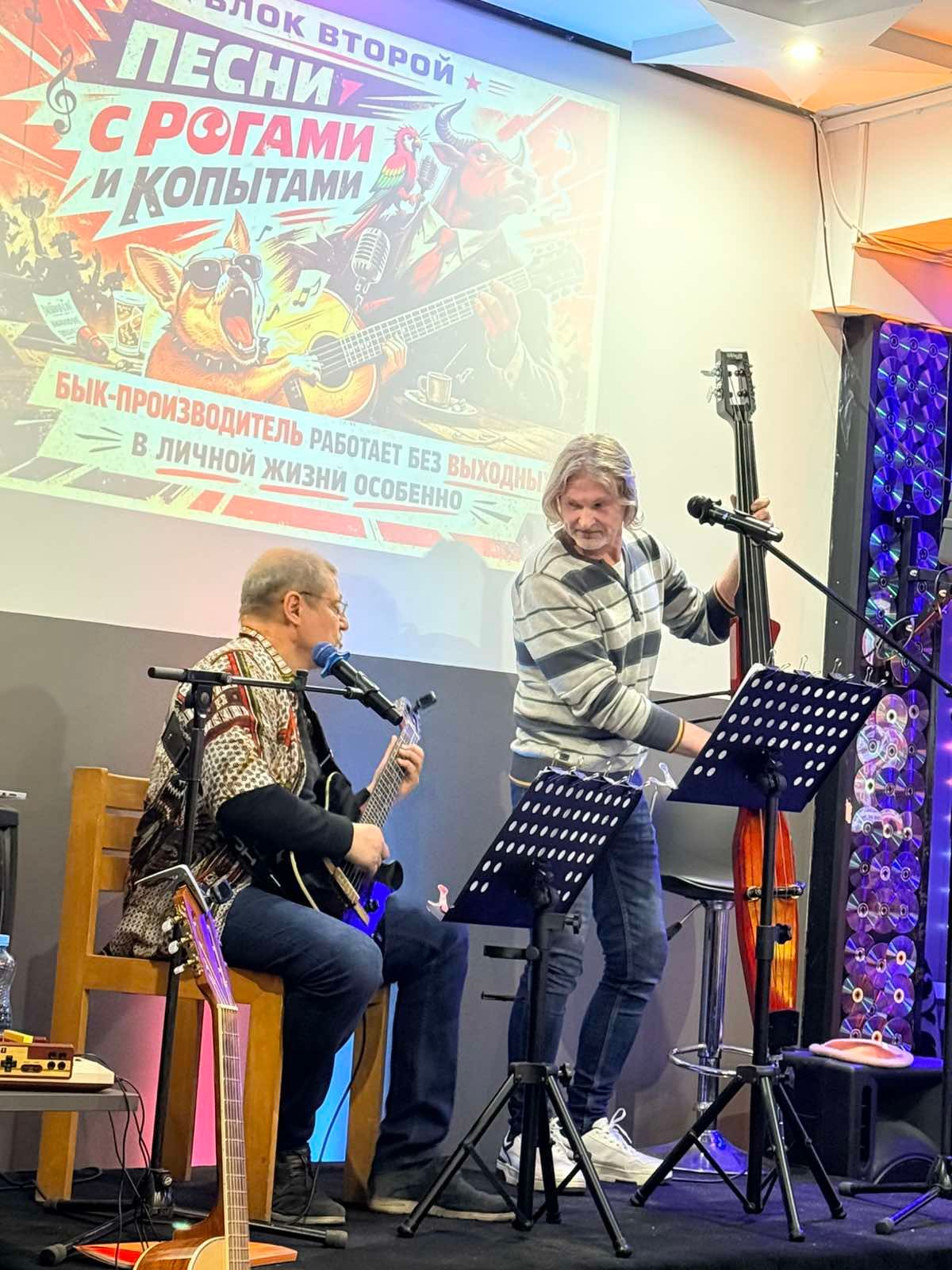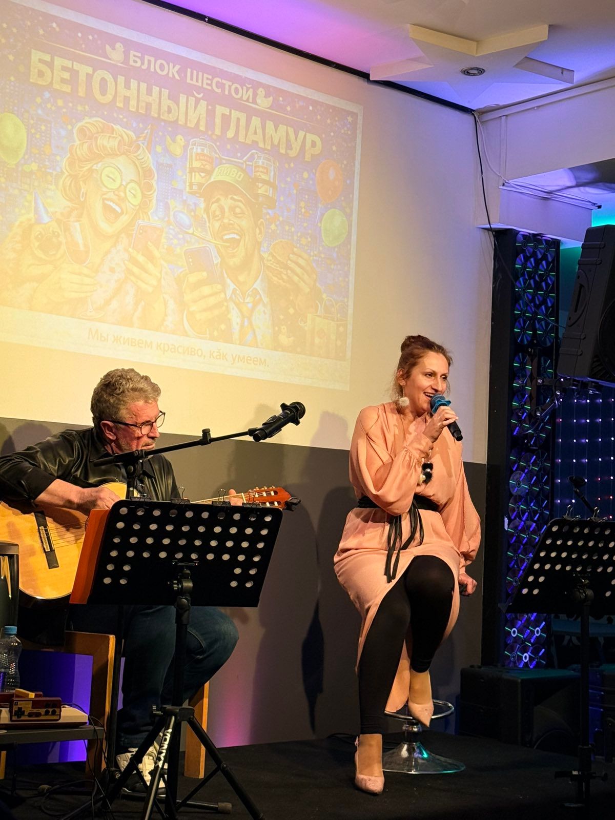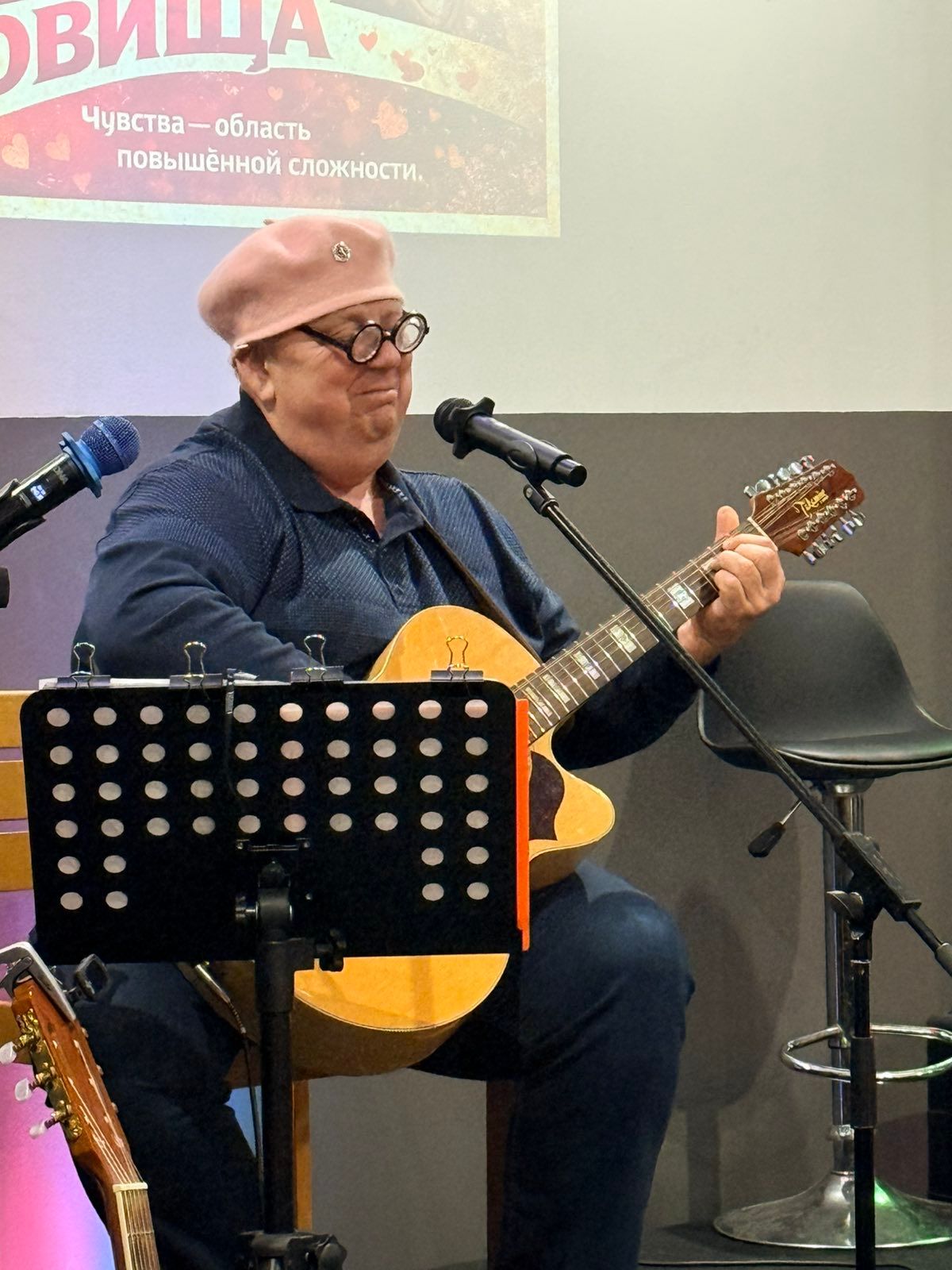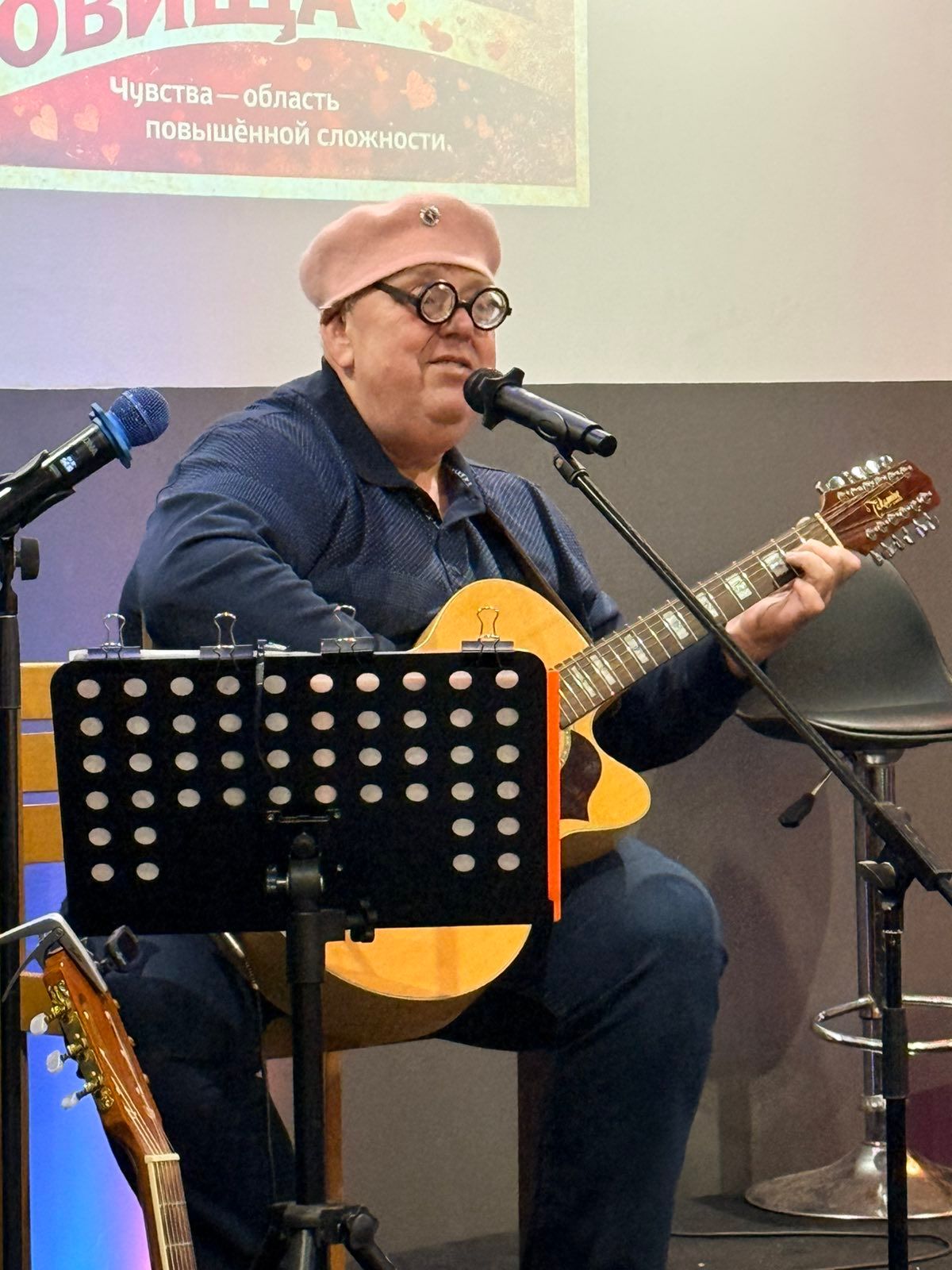 Это был не классический концерт «под гитару» и не стендап, а тёплая встреча, где звучали песни с характером, самоиронией и лёгким, интеллигентным юмором.