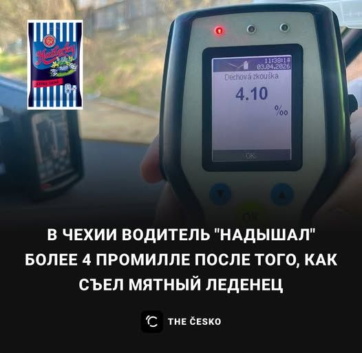 В Чехии водитель "надышал" более 4 промилле после того, как съел мятный леденец.