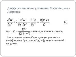 Пуассон стремился объяснить колебания упругих пластин на основе физических законов Ньютона и его физической модели. Начав с предположения, что пластина состоит из молекул, которые взаимно притягивают и отталкивают друг друга, Пуассон затем сделал ряд других, казалось, вполне разумных предположений. Рассуждая таким образом, он вывел чрезвычайно сложную формулу и, упростив её, пришел к уравнению Лагранжа. По современным представлениям допущения Пуассона кажутся абсурдными, и его попытка вывести уравнение Лагранжа была успешной лишь потому, что он знал о работе Жермен и Лагранжа.