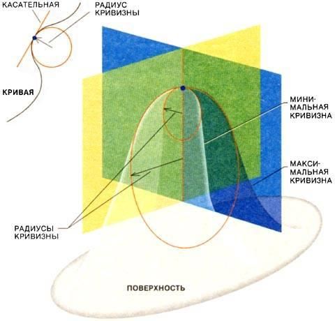 Понятие кривизны лежало в основе работы Софи Жермен по теории упругости. В любой точке кривую можно аппроксимировать окружностью с той же касательной, что и у кривой в данной точке. Кривизна обратно пропорциональна радиусу окружности. Для поверхности кривизна в точке определяется кривизной кривых, образованных пересечениями поверхности с плоскостями, перпендикулярными поверхности в этой точке. Из всех таких кривых выбирается наибольшая и наименьшая кривизна, которые называются главными величинами кривизны.