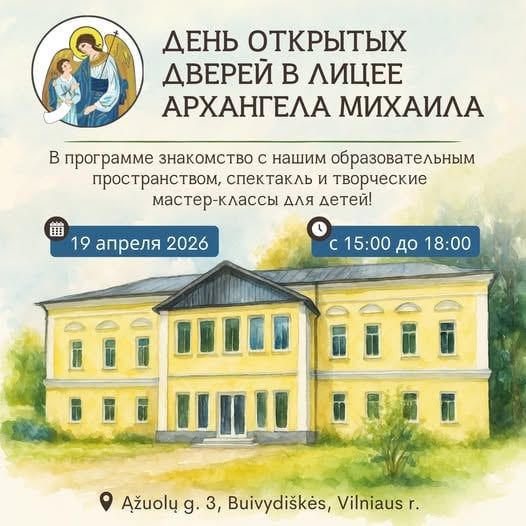 19 апреля лицей Лицей Архангела Михаила (Arkangelo Mykolo licėjus) приглашает всех желающих на День открытых дверей по адресу: Ąžuolų g. 3, Буивидишкес, Вильнюсский район.