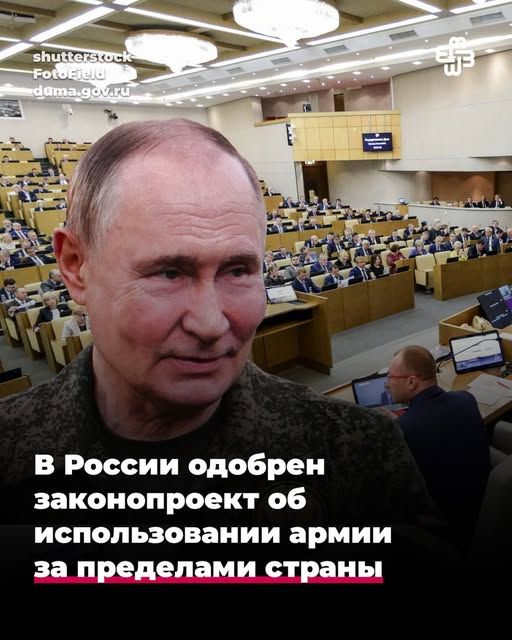 Госдума России в первом чтении приняла законопроект, позволяющий по решению президента использовать вооруженные силы за рубежом для защиты россиян, подвергающихся судебному преследованию.