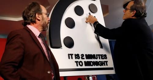 Параллельно ученые и аналитики продолжают оценивать риски, связанные с деятельностью человека. Например, символические Часы Судного дня, созданные Бюллетень ученых-атомщиков, показывают, насколько человечество приблизилось к глобальной катастрофе.