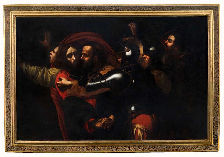 На картине «Взятие Христа под стражу», также известной как «Поцелуй Иуды», изображена сцена предательства. Считается, что в правой части композиции Караваджо изобразил самого себя — он держит фонарь, свет которого выхватывает из темноты этот роковой момент.