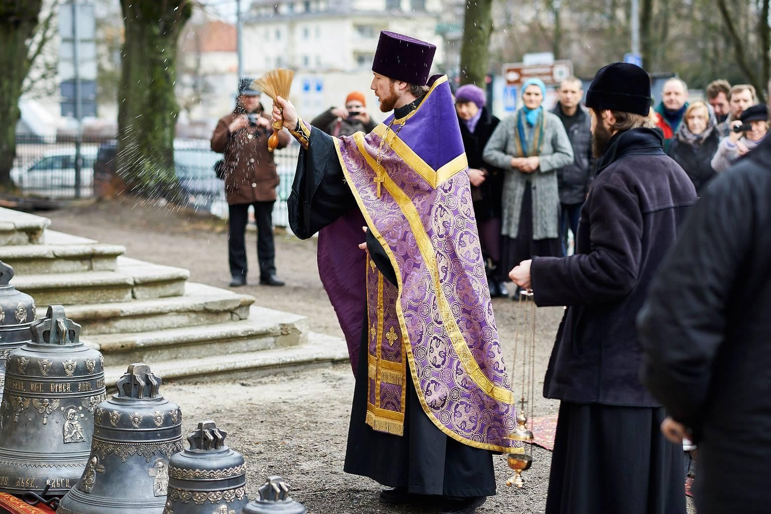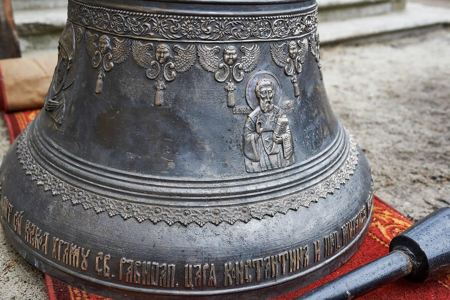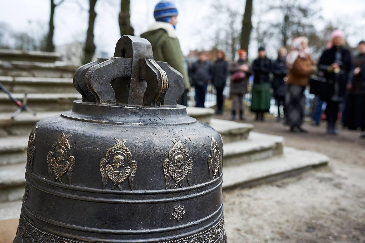 «Из Москвы в Вильну были доставлены для нового храма тринадцать колоколов. Особым событием стала доставка из Москвы в Вильну тринадцати церковных колоколов, общим весом в 935 пудов. Главный колокол весил 517 пудов и уступал по тяжести только колоколу тогдашнего Николаевского православного кафедрального собора (ныне костел св. Казимераса)…».