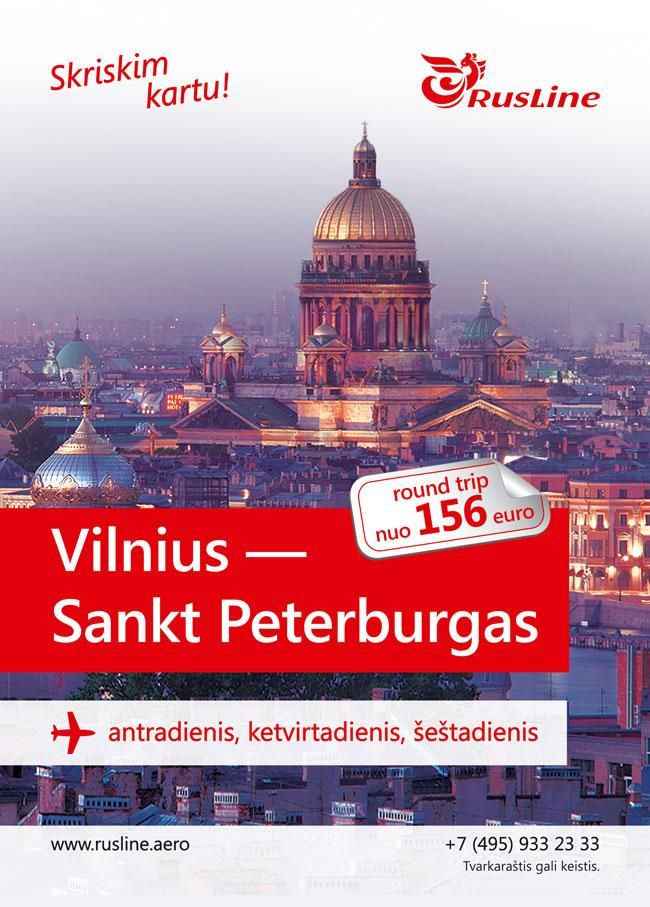 19 мая, во вторник на следующей неделе, российская авиакомпания «РусЛайн» начинает полёты на новом для себя международном направлении Вильнюс - Санкт-Петербург.