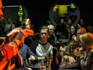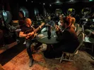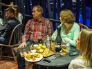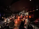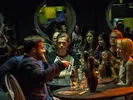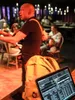 А рядом со столиками, на месте билиардных столов, на дорожках боулинга была организована сцена, оснащенная новейшей звуко и видео техникой. На этой площадке может поместиться 100 человек, а на танцевальной - 200!