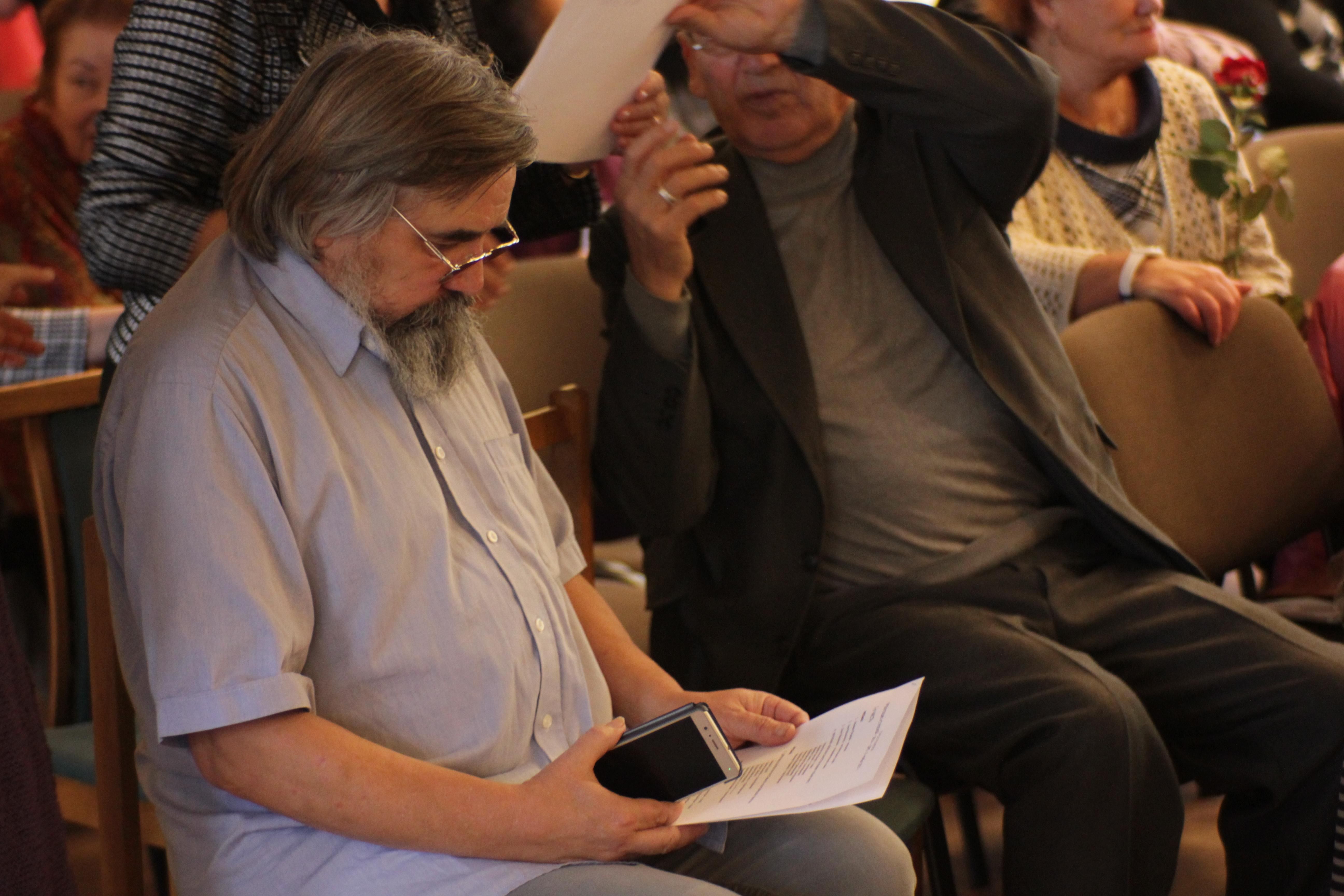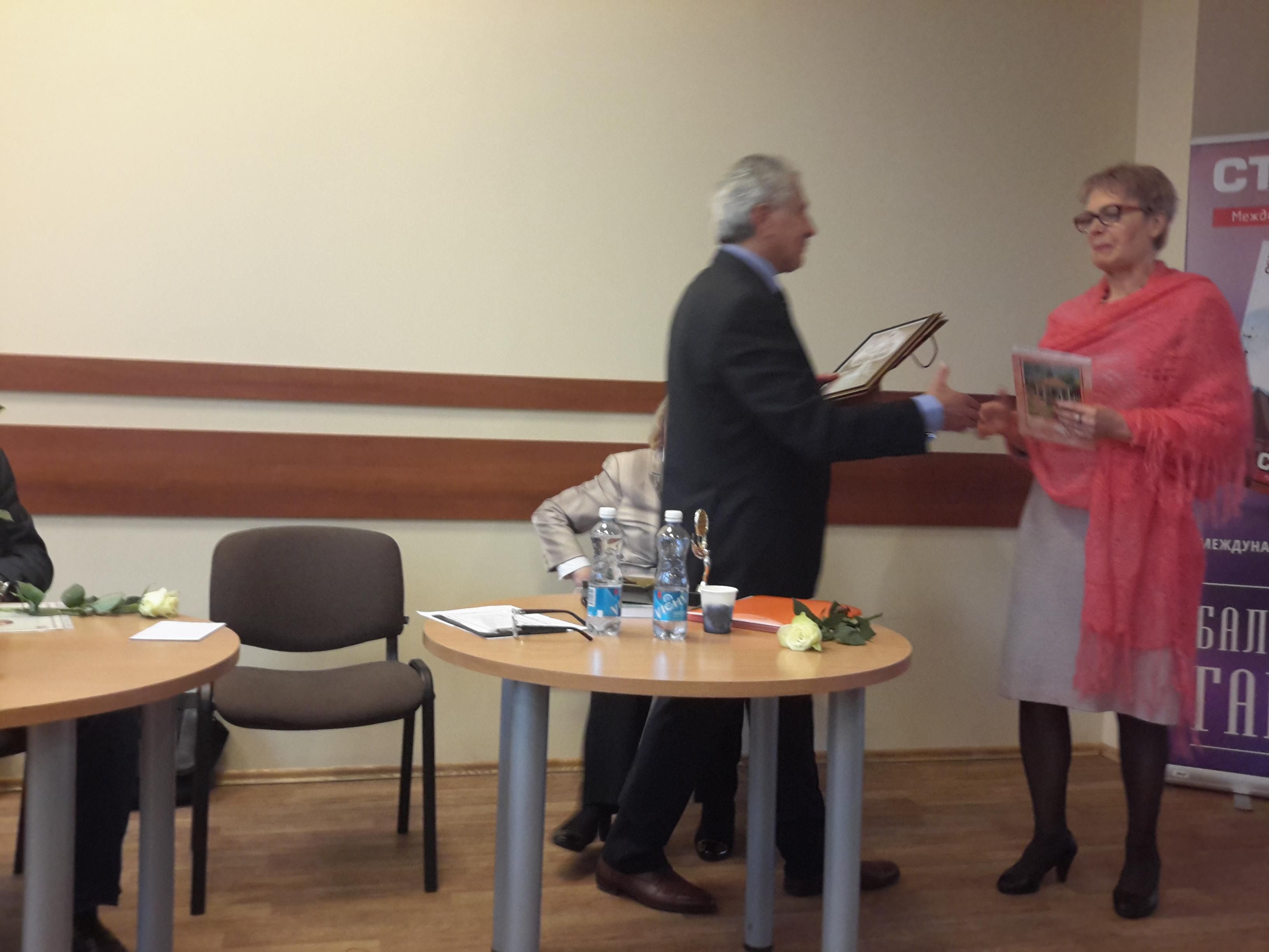 На презентации новых «Ступеней» состоялось торжественное вручение членских билетов новым участникам МАПП. Затем слово получили те лауреаты фестиваля «Балтийский гамаюн», которым удалось присутствовать на мероприятии. Среди них – один из патриархов современной литературы, поэт, писатель и переводчик Алексей Гречук из Вильнюса, прекрасная молодая поэтесса Анна Протасова из Киева, специально приехавшая на презентацию, Наталья Русских-Аболина из Вильнюса, прочитавшая потрясающей силы стихотворение «Тихий Дон», поэтесса и прозаик Валентина Егорова, также живущая в столице Литвы.