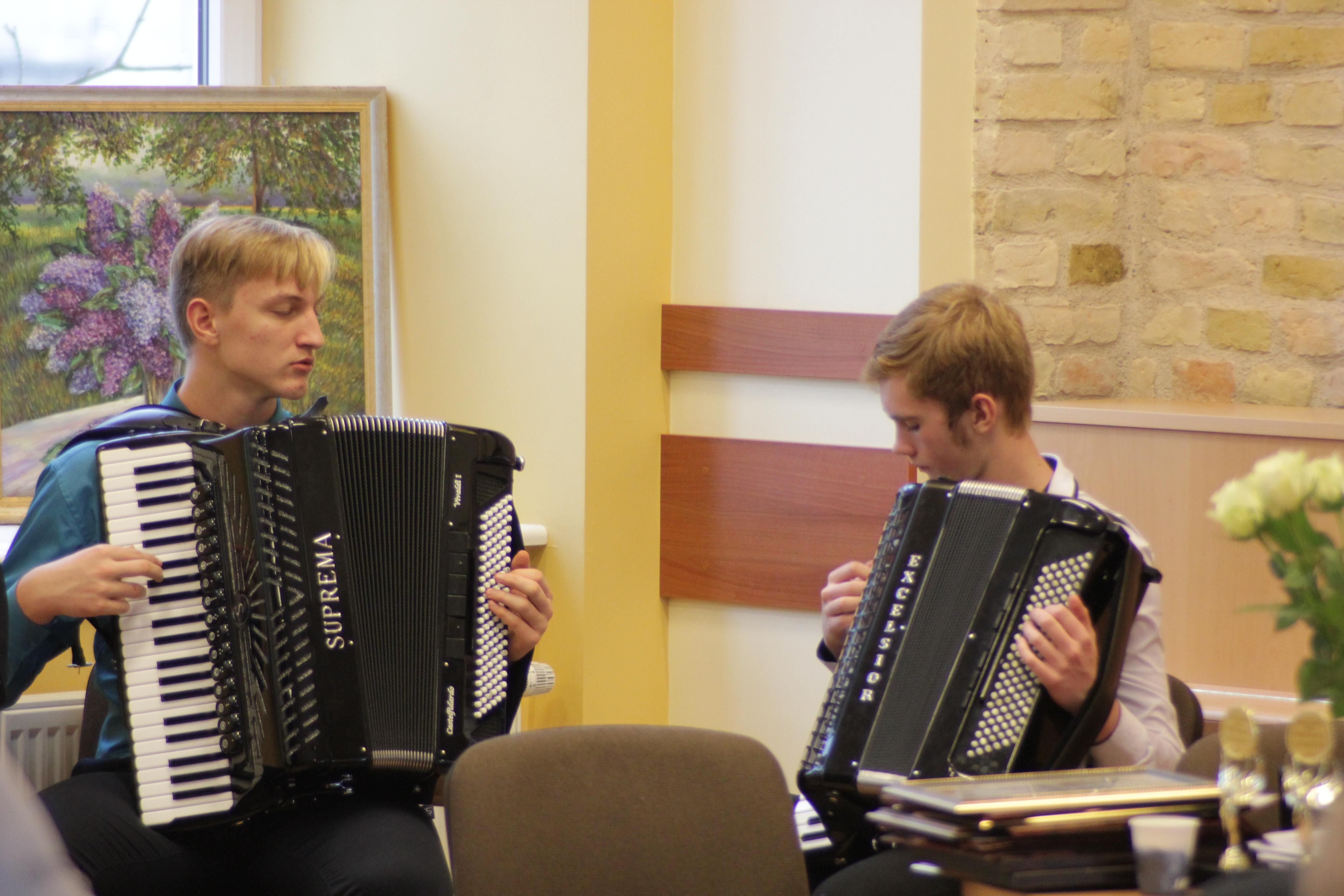 На протяжении всего вечера собравшихся радовал прекрасным исполнением дуэт аккордеонистов «Аккорд Микс» Руслана Гримбовского и Эдвина Янкунца.