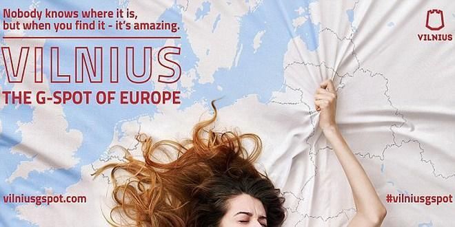 Скандальная реклама с изображением женщины, лежащей с искаженным будто бы от удовольствия лицом, которая вцепилась в одеяло с картой Вильнюса, появилась в прошлом году. В следующем рекламном ролике был показан турист в экстазе у здания в городе.