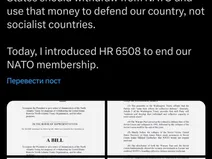 Конгрессмен-республиканец Томас Масси внес законопроект о выходе США из НАТО. В опубликованном им законопроекте говорится, что Альянс является пережитком холодной войны.