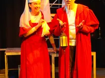 Специально на День всех влюблённых – Св. Валентина – подлинный театральный подарок вильнюсской публике! Никакой скуки и тоски, только веселье, потрясающая актёрская игра, вихрь бурлеска, юмора, прекрасных костюмов и мгновенных смен масок и образов, бодрящая эротика, интерактивное общение с публикой… - и всё это только 14 февраля, суббота, в Вильнюсе, в знаменитом столичном кукольном театре «LĖLĖ» (ул. Арклю 5) на уникальной, очень удобной и уютной сцене Малого зала «Mažoji salė», находящегося на 1 этаже рядом с музеем театра «Mažoji salė», начало в 16:00 на премьере спектакля «Декамерон», созданного и сыгранного прекрасными и известными Актерами и Режиссерами Александром Рубиновасом и Дайвой Шкелевайте!