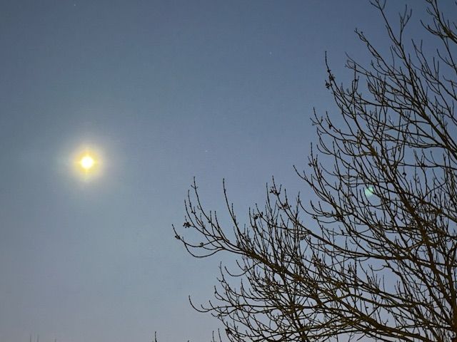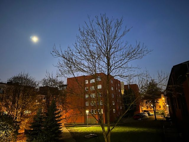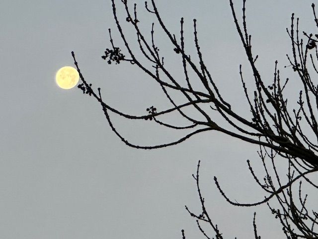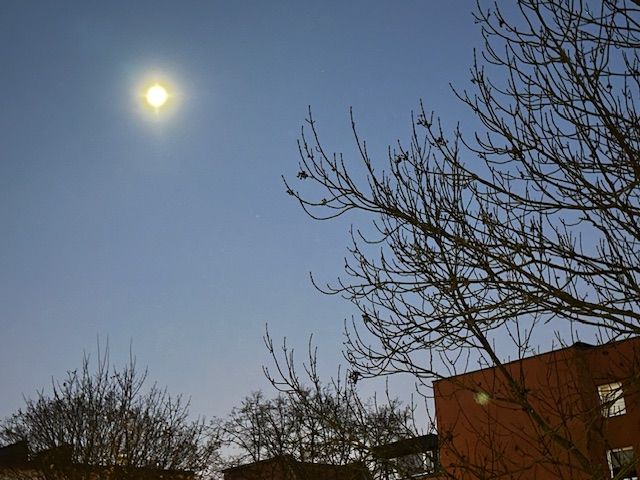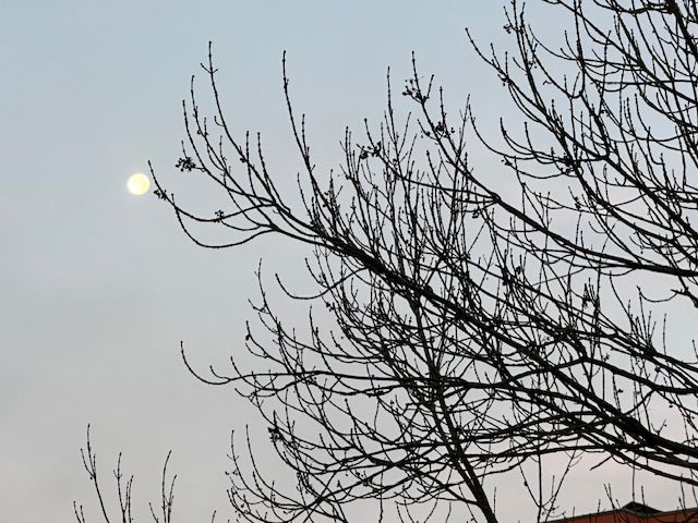 Луна повисла у окна, желая людям всем добра.