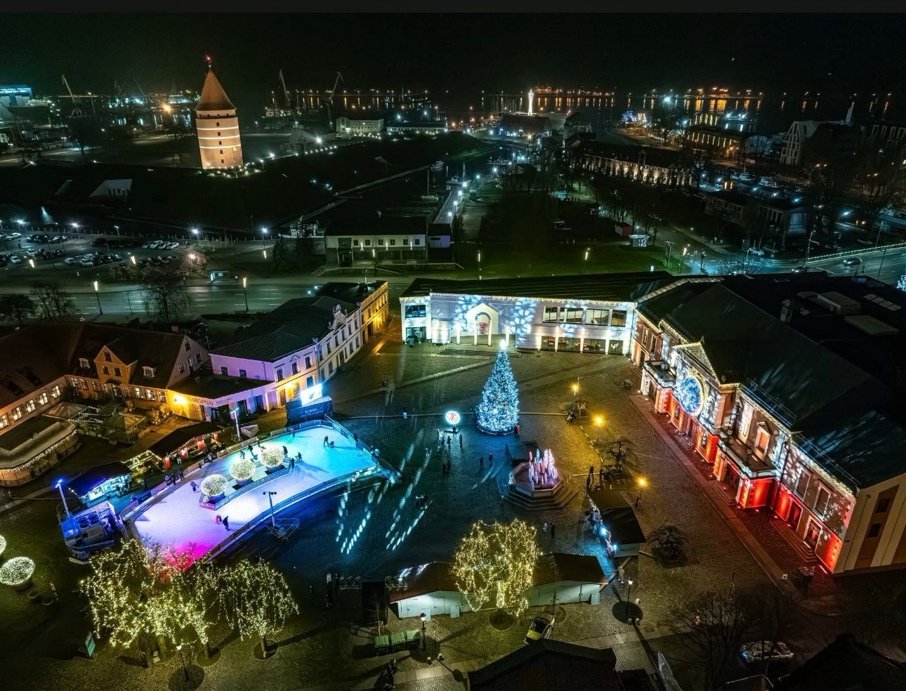 В Клайпеде, на Театральной площади, - главная ёлка города, рядом - ледовый каток, светятся огоньками находящиеся рядом деревья и звучит музыка. Праздничное настроение создаёт и световое оформление зданий.