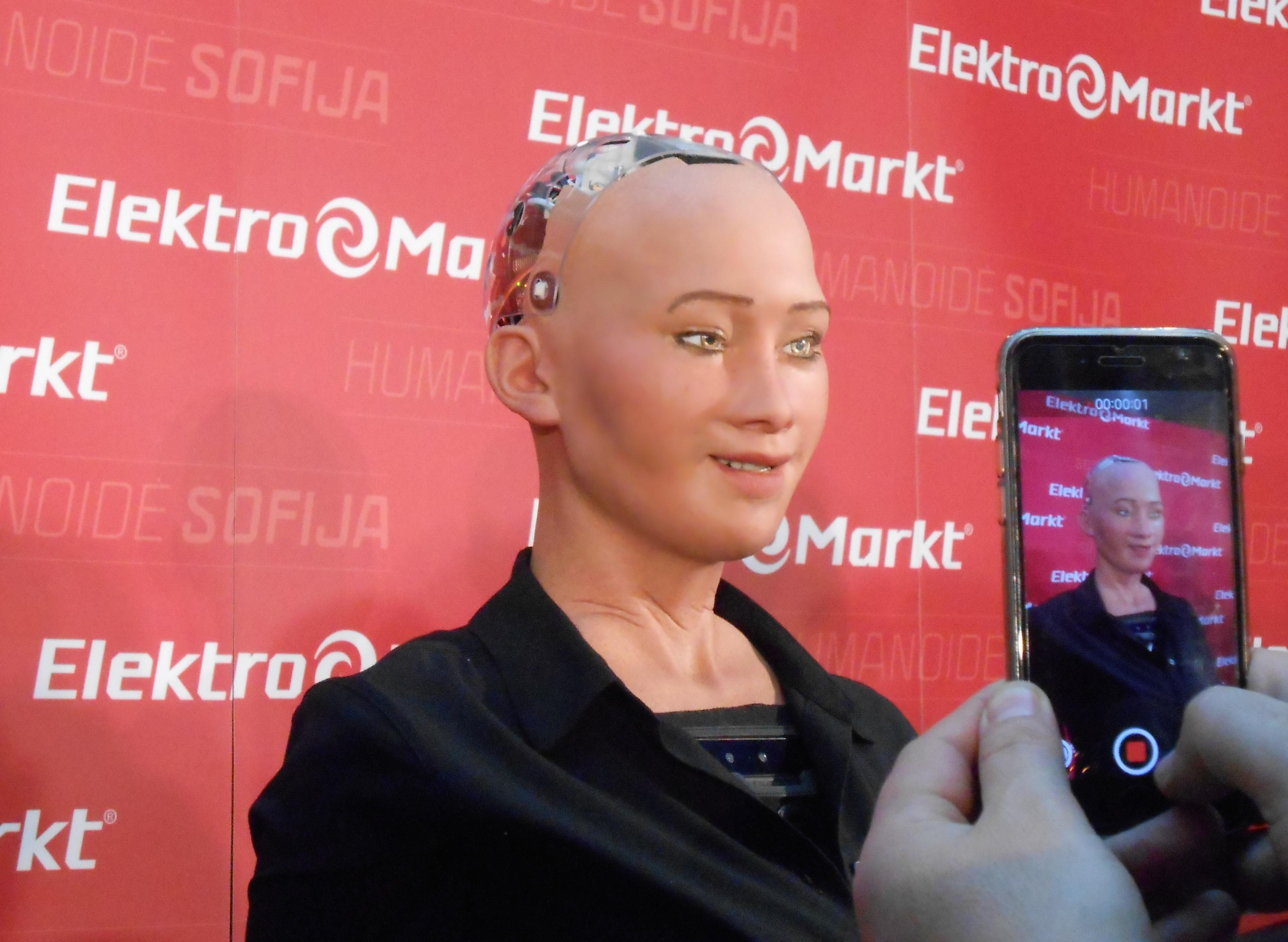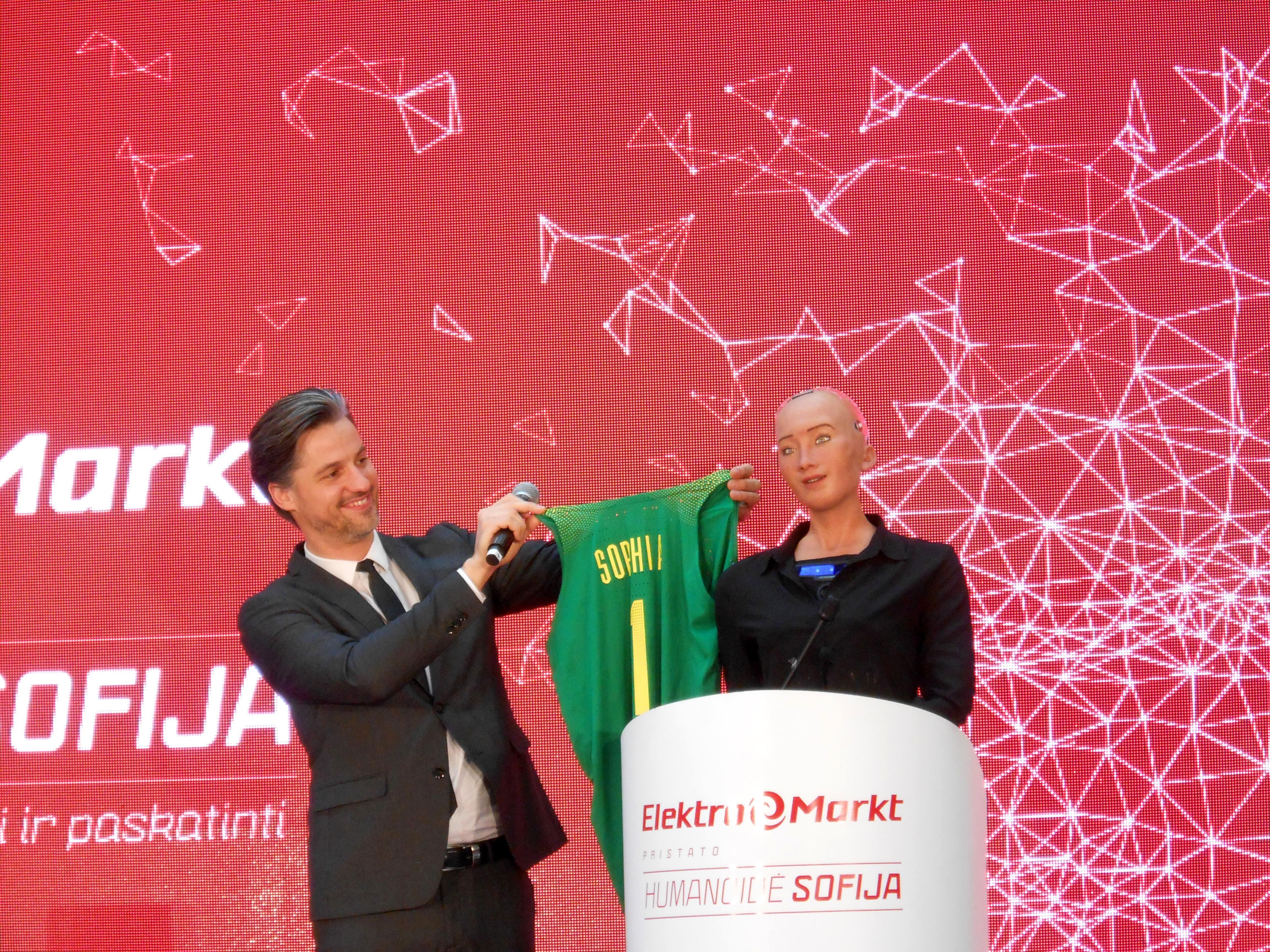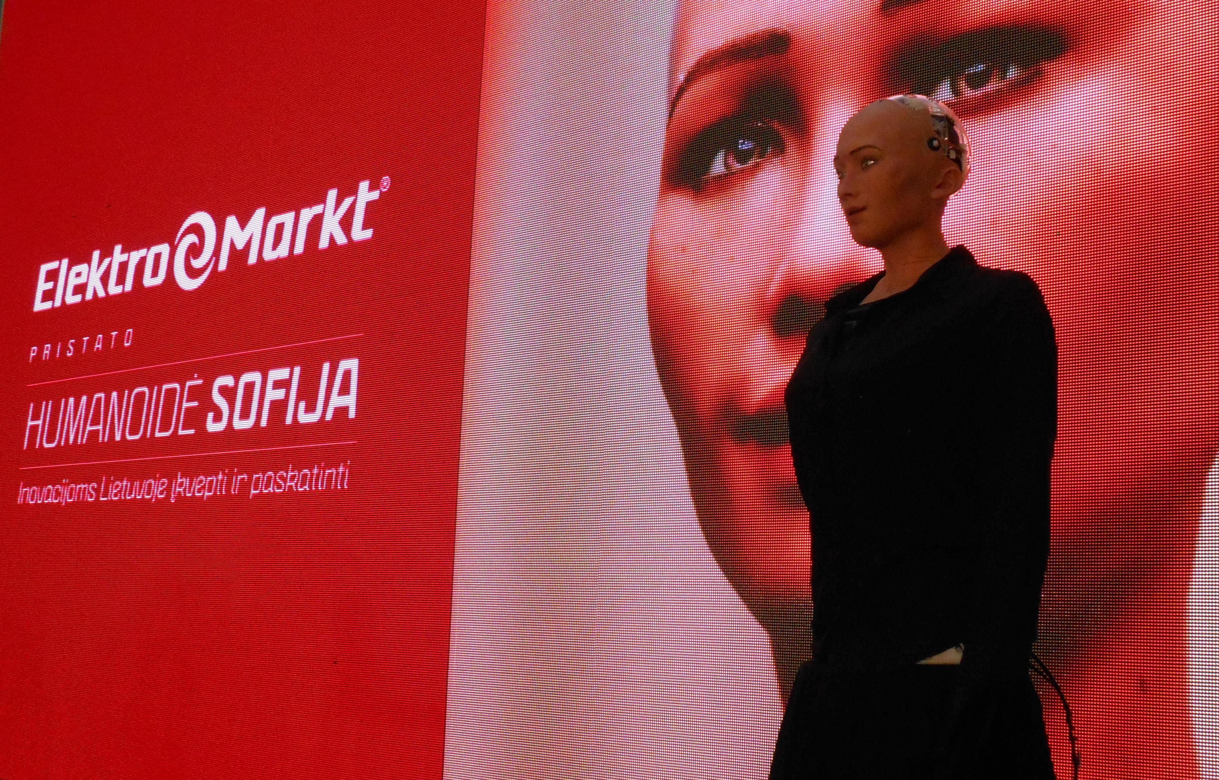 На днях в вильнюсском бизнес-центре К29 торговая сеть «Elektromarkt» организовала конференцию, участником которой стала гуманоид София.