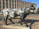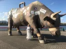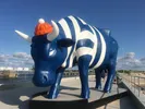 Огромная «Корова-путешественница» изображена в виде старого, потрепанного чемодана, украшенного наклейками из городов, в которых проходил «Парад коров»