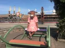 На променаде улицы Остас сидит на качелях милая коровка в цветочном платьице и приглашает всех сфотографироваться на память.